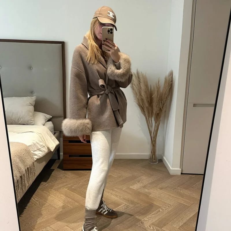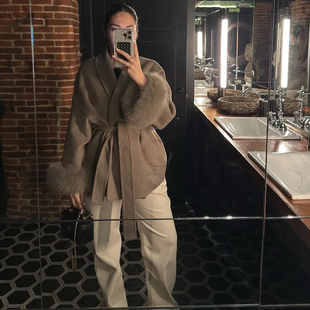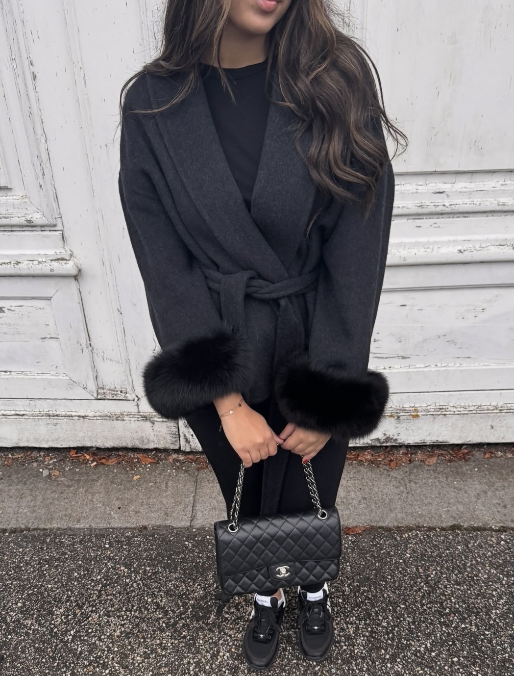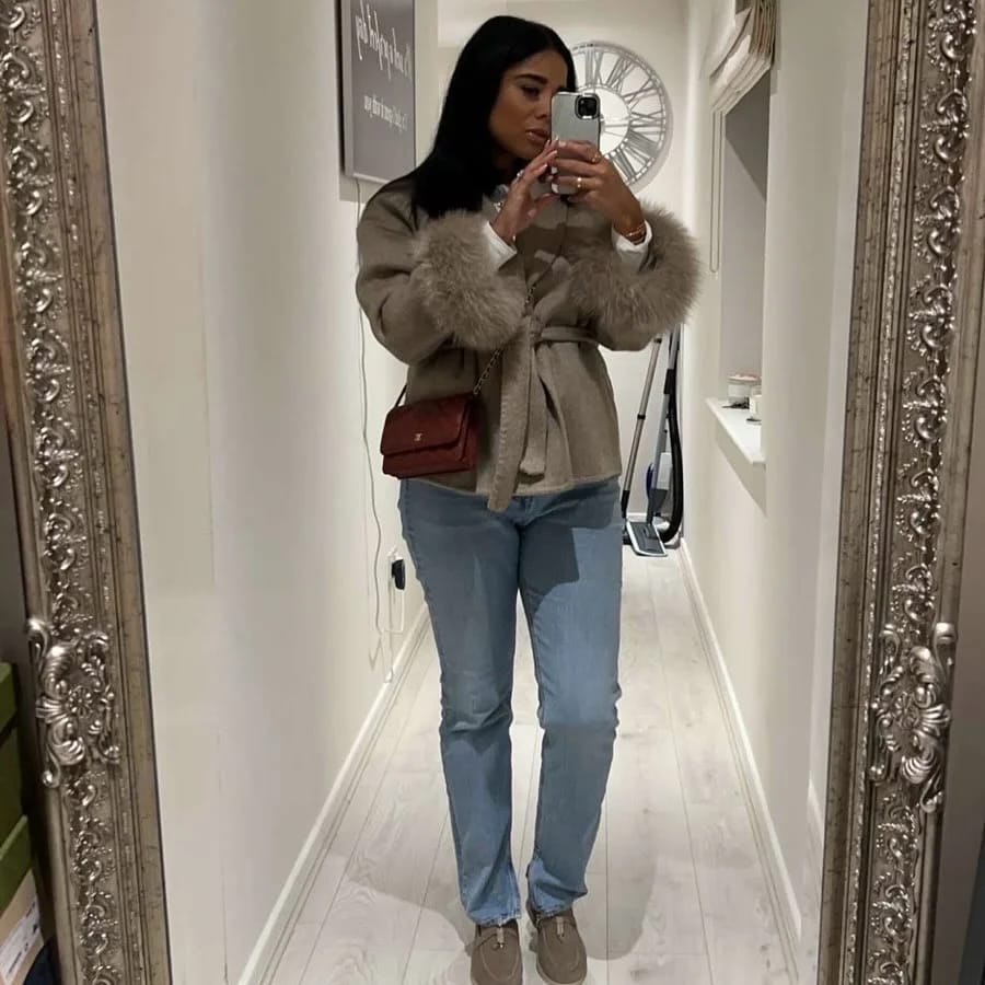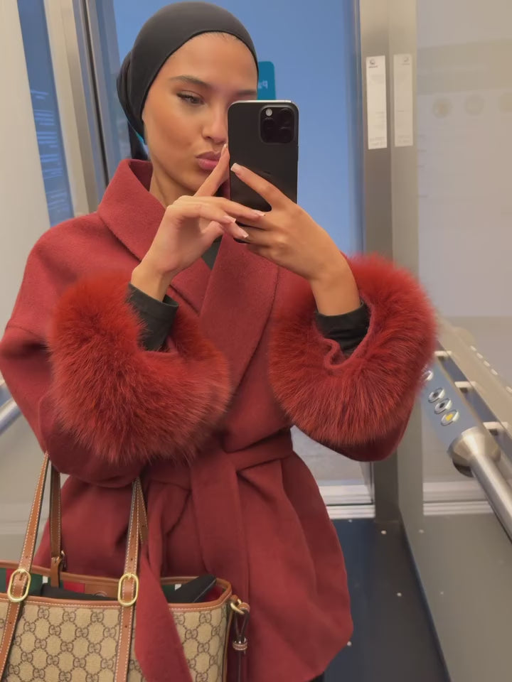 Ses manches ornées de délicates finitions en fourrure ajoutent une touche de caractère et de luxe discret. La texture riche de son tissu et la profondeur de son brun chocolat font de Nala une pièce élégante, à la fois moderne et indémodable.
