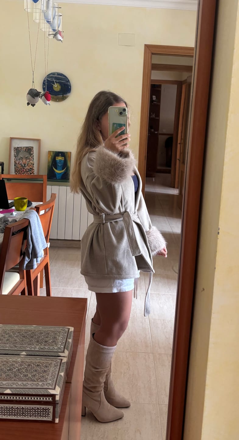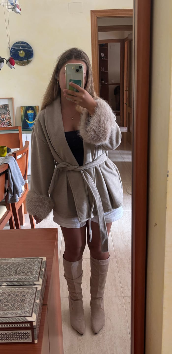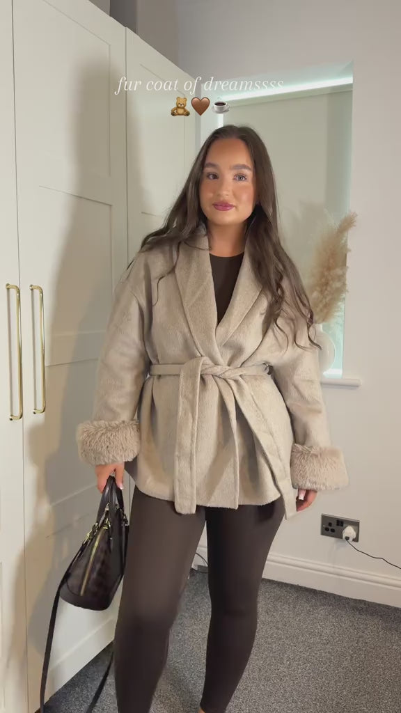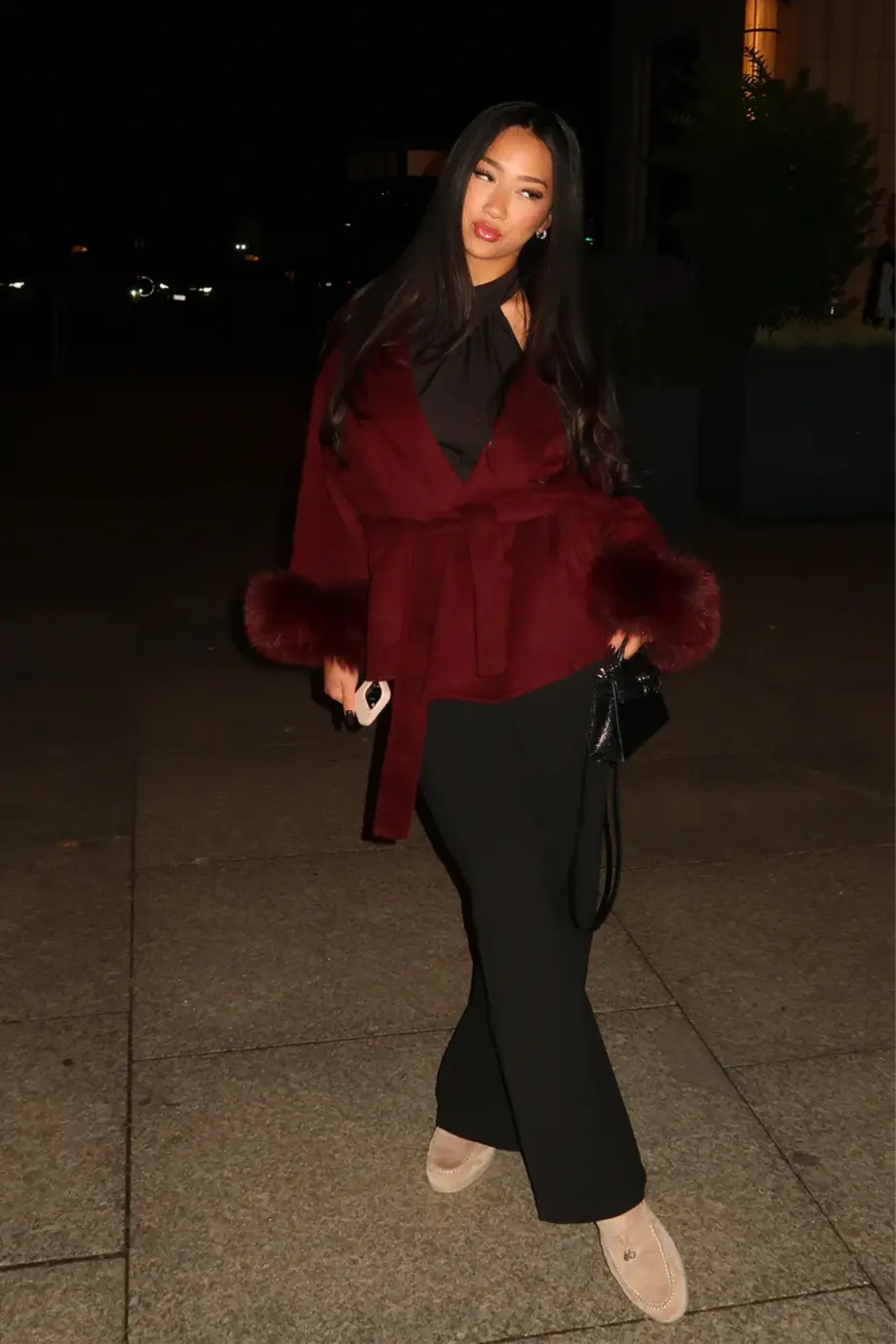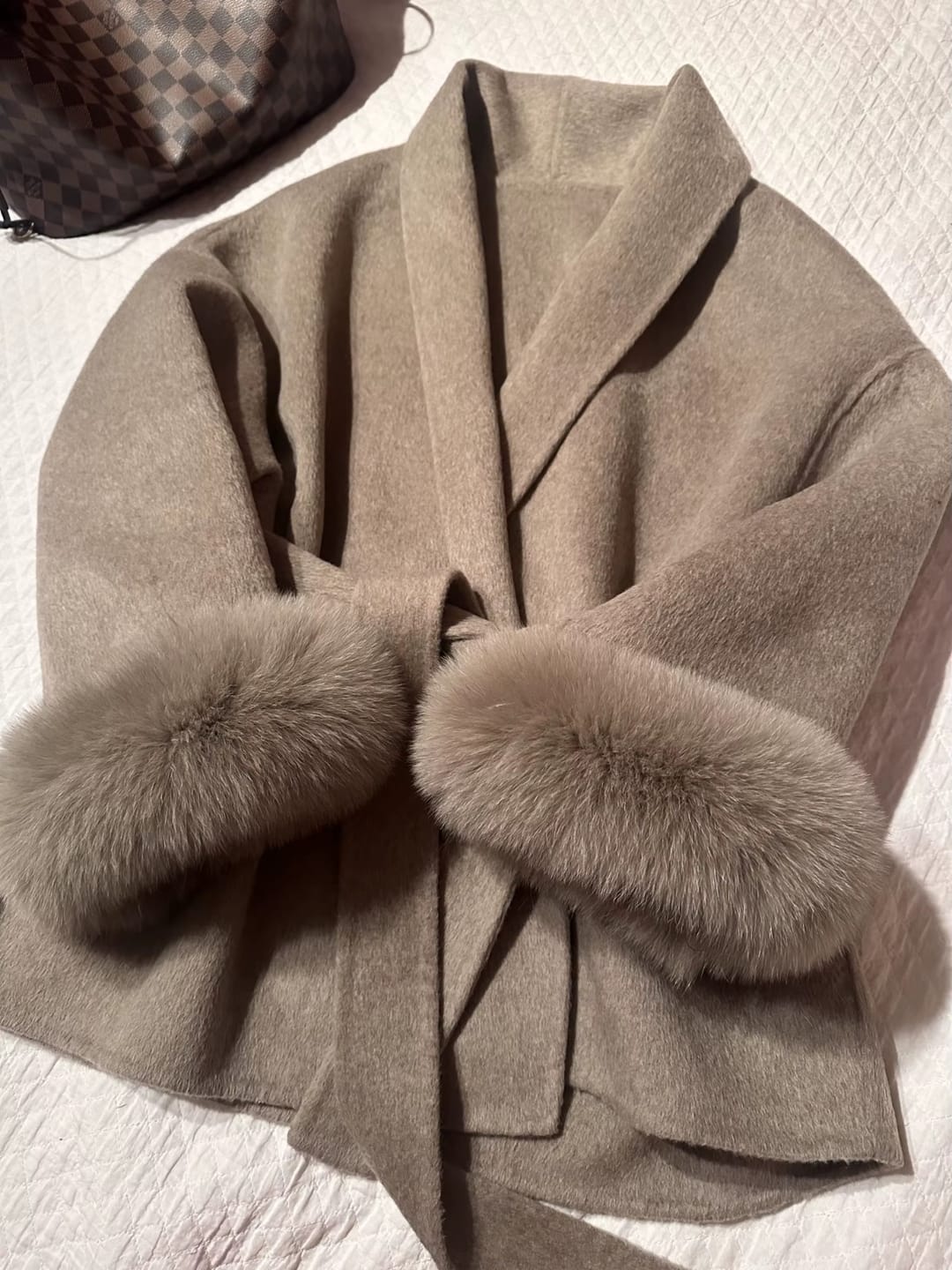 Ses manches ornées de délicates finitions en fourrure ajoutent une touche de caractère et de luxe discret. La texture riche de son tissu et la profondeur de son brun chocolat font de Nala une pièce élégante, à la fois moderne et indémodable.